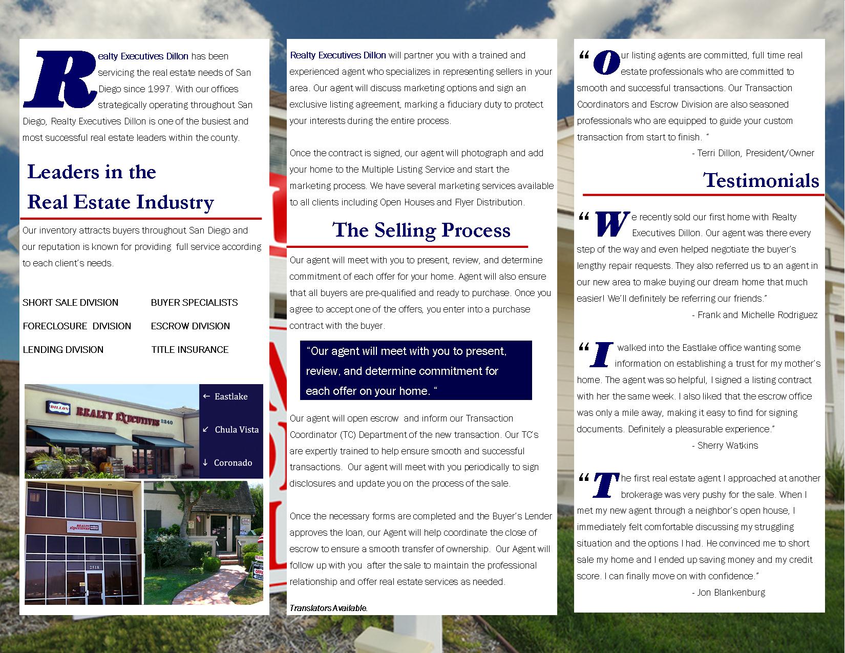 My Brokerage had a brochure to advertise to Banks for their REO listings. However, they did not have a brochure for advertising to homeowners. I modified the existing material to cater to all homeowners and also expanded on the selling process and testimonials from clients to give readers a better idea of the brokerage’s high quality of service. I added the same photo to both sides to add consistency. I did not change the opacity of the text boxes because I wanted to highlight the text more than the design while still getting a bit of depth from the layers. This piece can easily be cusomized for each agent to add their own picture and contact information when prospecting for clients. The Brokerage loved the flyer and the piece is currently used by many of the agents in their marketing strategies.